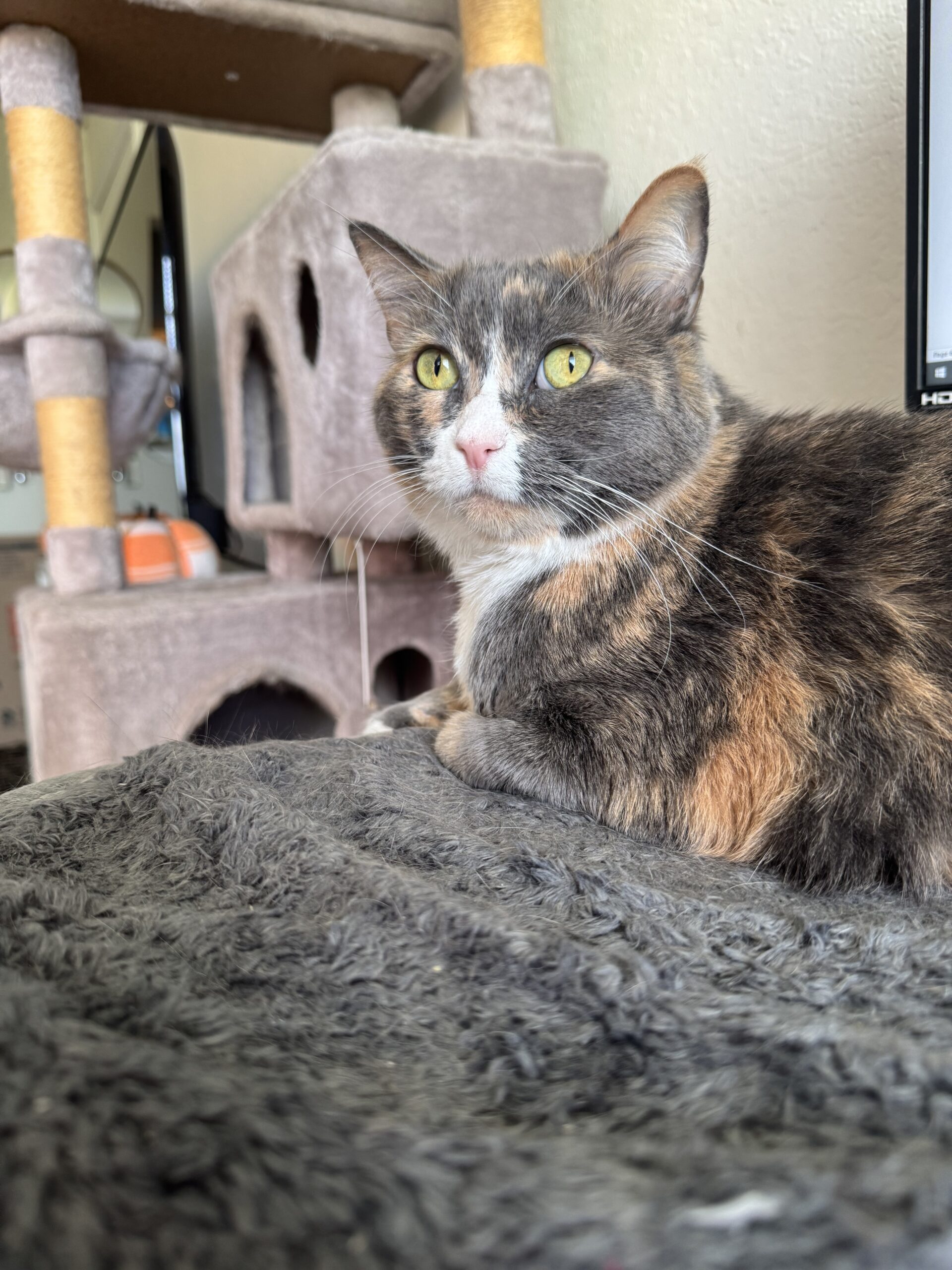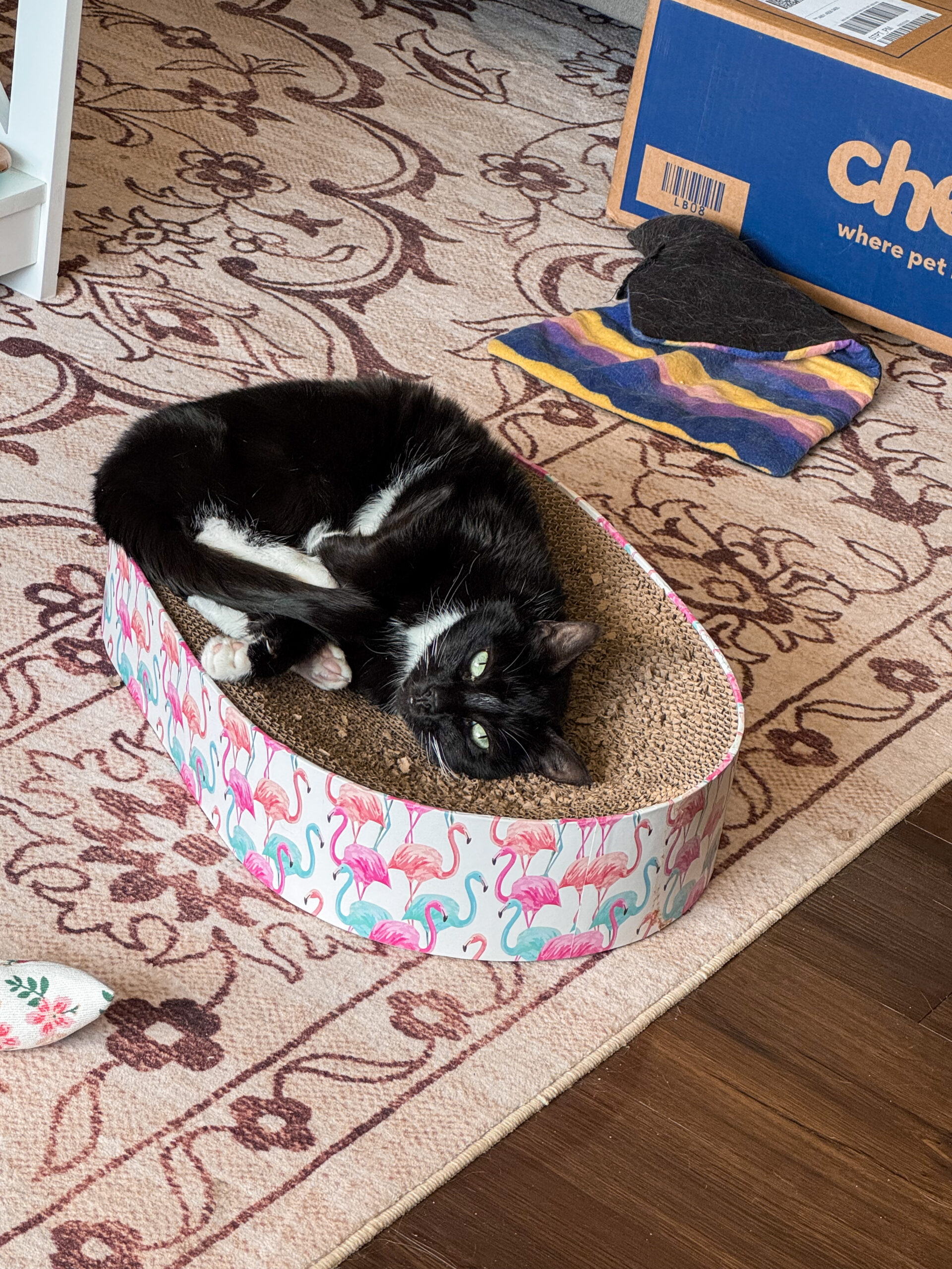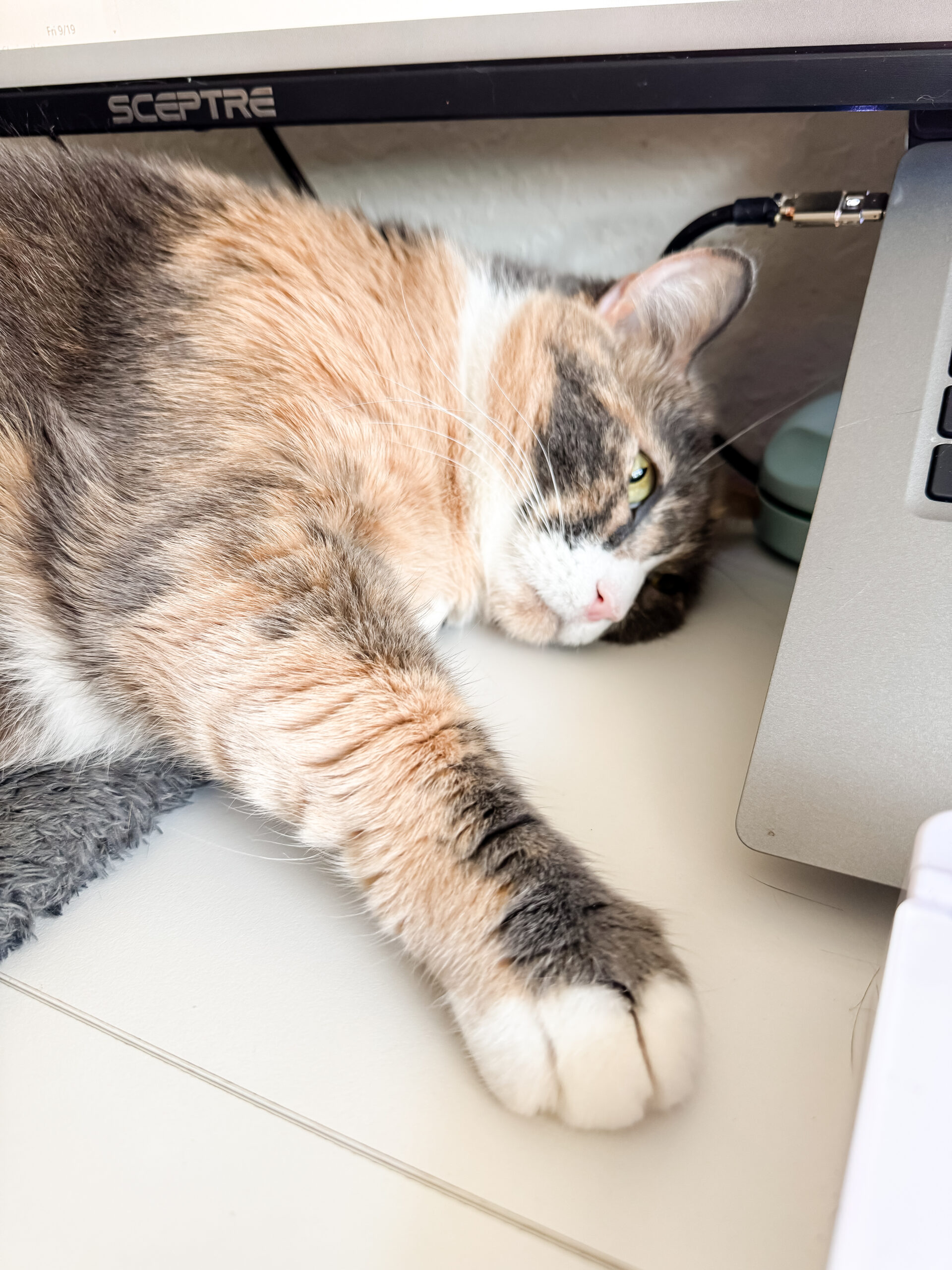 2:15 p.m.: Here’s a cute photo of Eloise as she naps in one of the cat scratchers. I’m editing content and responding to emails at this time, nothing exciting.