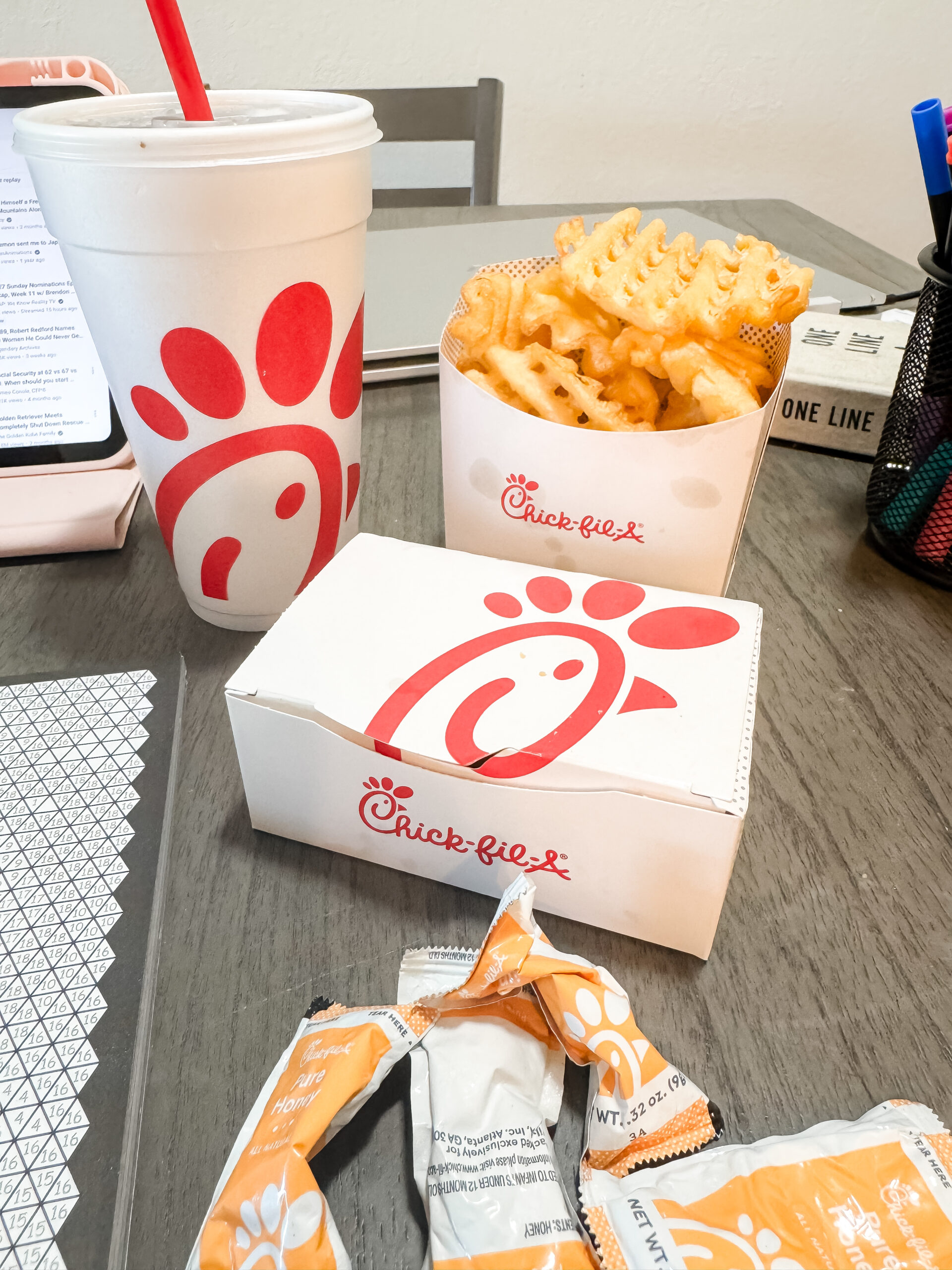 1:02 p.m.: After my visit to urgent care, Mom and I stopped by Chick-Fil-A to pick up lunch. Yassss!