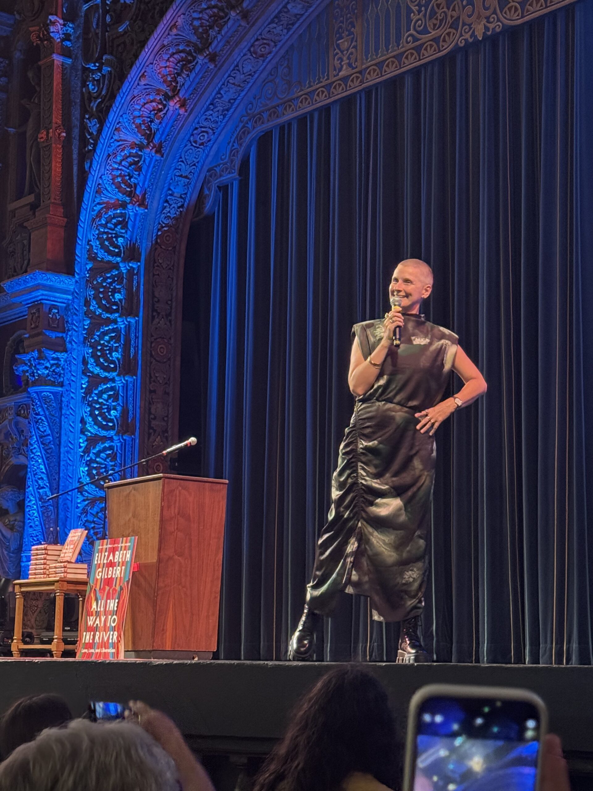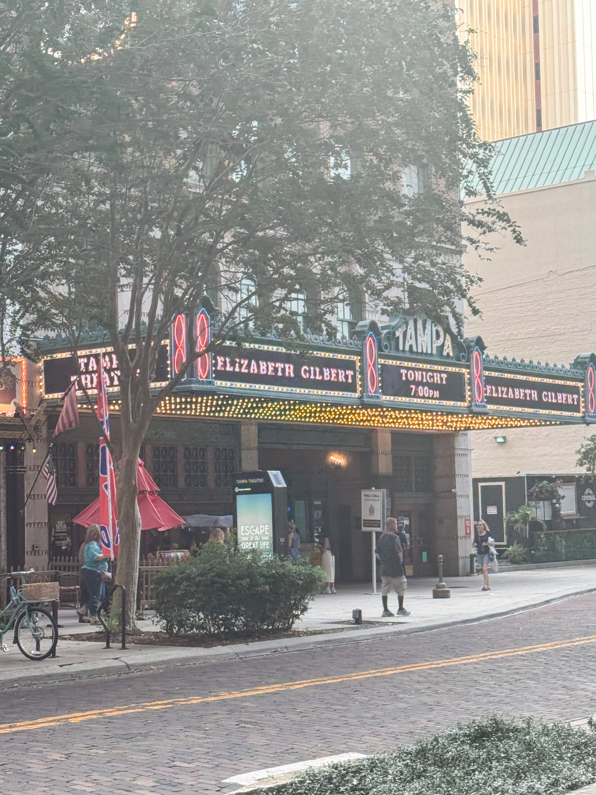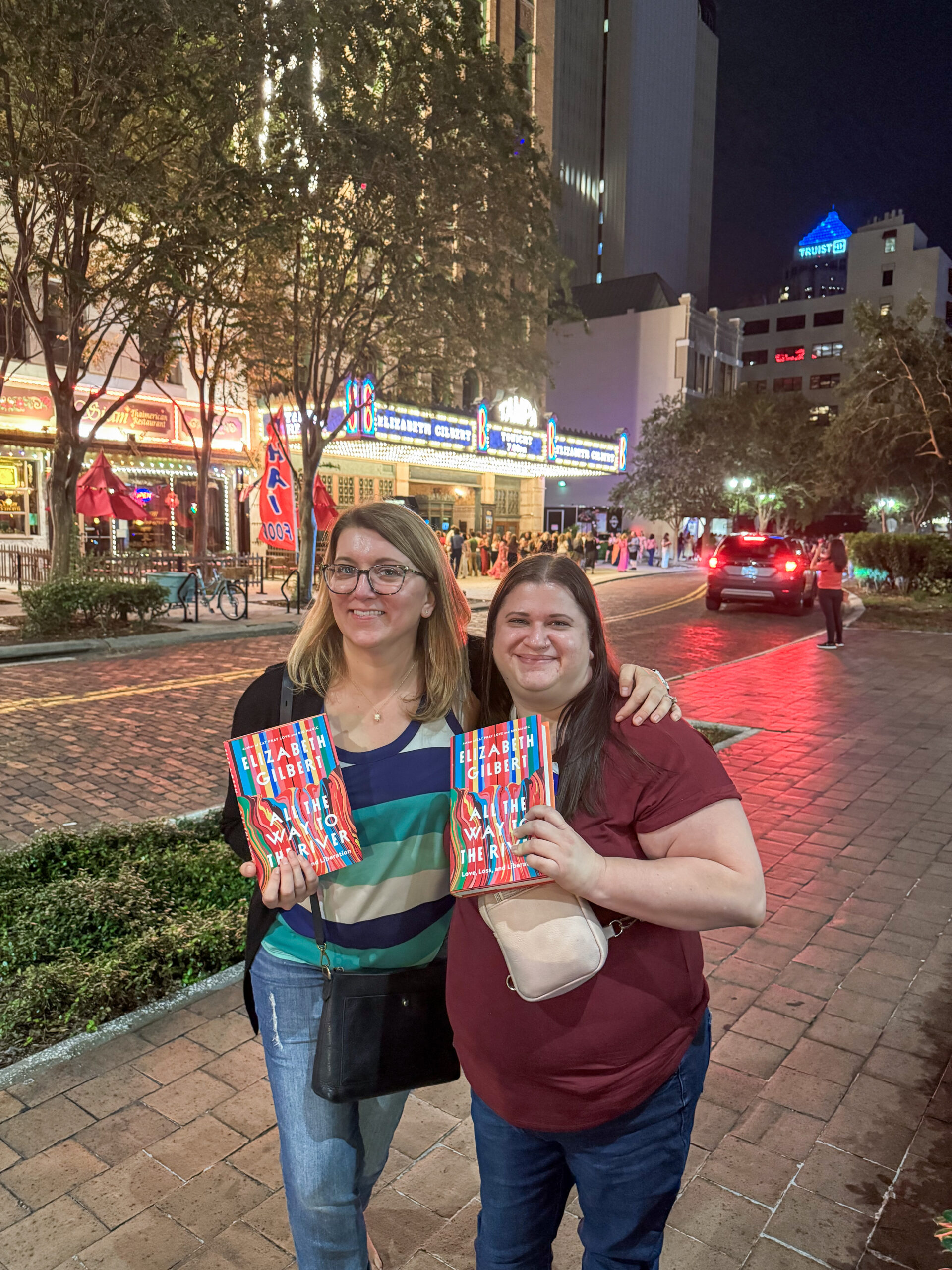6:39 p.m.: I’ve been looking forward to this event for a long time! When I saw Elizabeth Gilbert was coming to Tampa on her book tour, I texted my friend Lynn and asked if she had any plans on this night. I made this her birthday gift, and we both got a signed copy of the book. I honestly had no idea what the book was about and didn’t realize it was a memoir of her wife dying with lots of stuff about addiction and codependency. Not exactly the lighthearted book I usually expect from her!