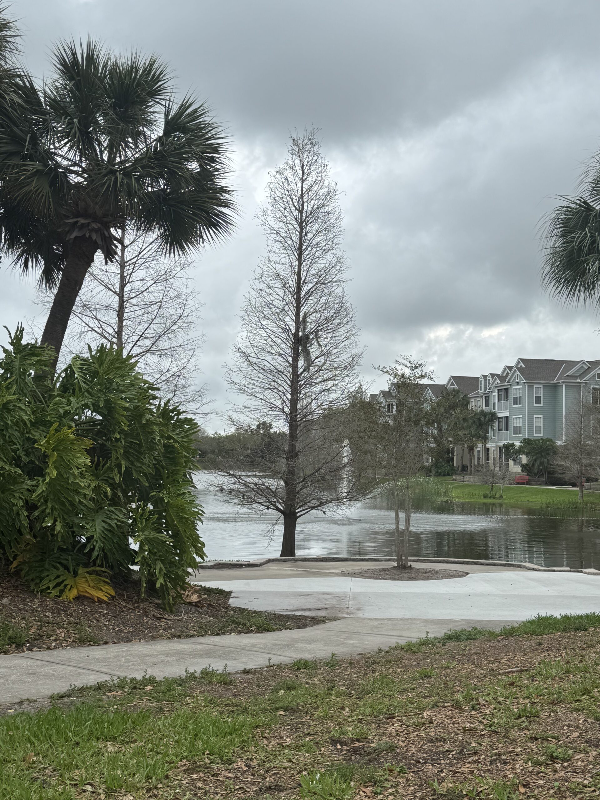 March 12, 2026 – I took a risk and went for a walk right before a big rainstorm threatened. It started sprinkling when I was halfway done, but didn’t start come down harder until I was steps away from my apartment. Whew!