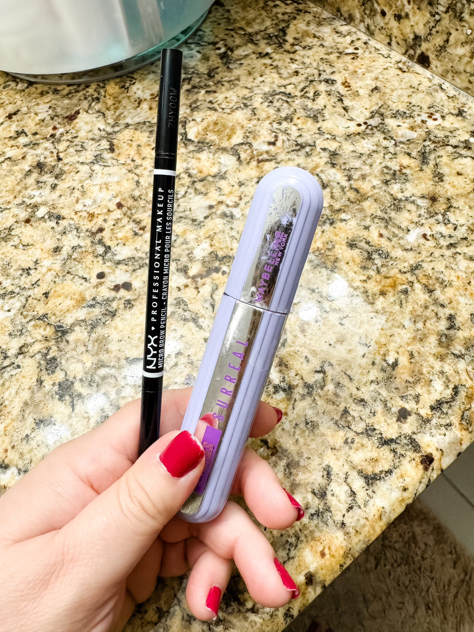 8:43AM: My makeup routine. When I worked in an office, my makeup routine had many more steps. But now, all I do is draw on some eyebrows and put on some mascara. And I only do this on the days I have meetings. No meeting day? No makeup!