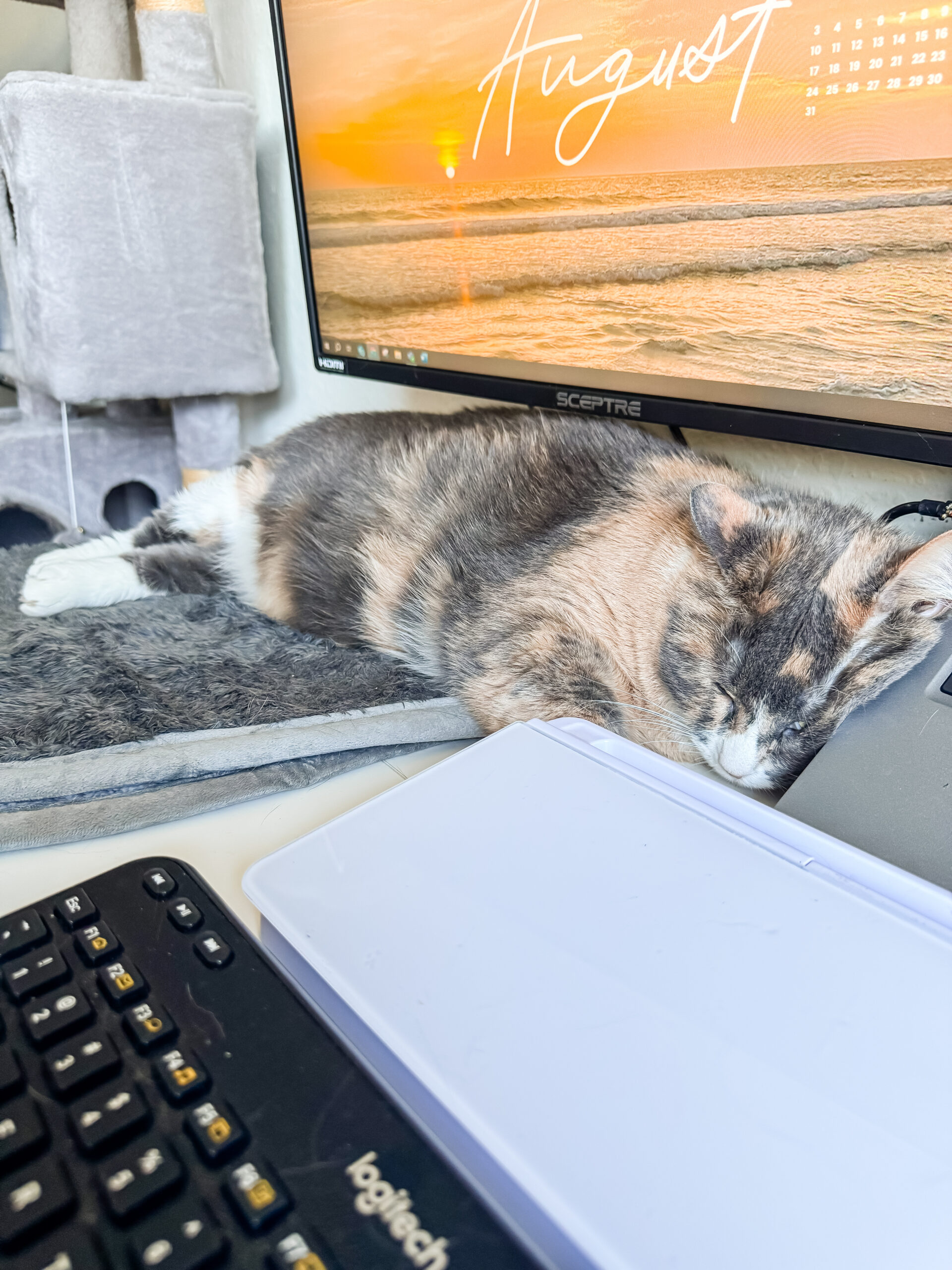 9:26AM: It’s work time! Lila loves to curl up on my laptop because what’s more cozy than the hard shell of the side of a laptop? I spend this hour working through my daily morning tasks – clearing out my emails, checking in on my contractors, and checking on our content queue to make sure there’s nothing that needs my attention.