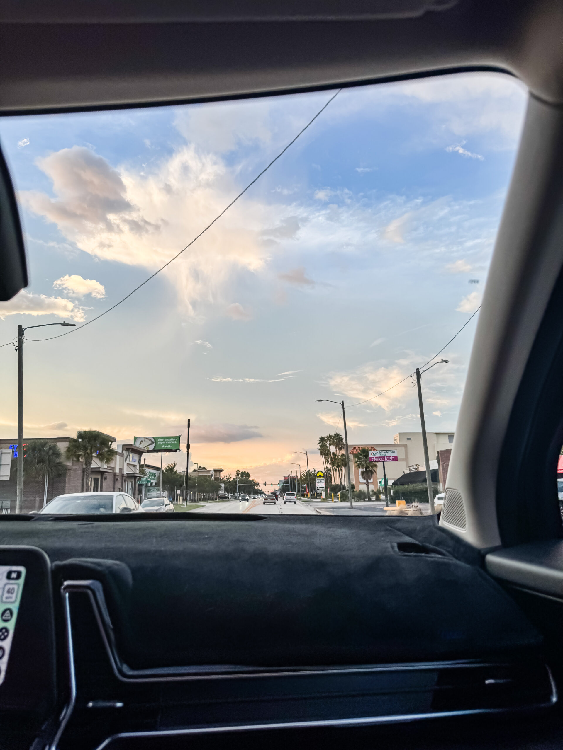 7:58PM: Those Florida summer skies – love them! My mom and I finished up with Amber after about an hour-ish of discussing our itinerary and moving some things around and it was time for dinner! My mom drove, so it was very nice to be the passenger princess.