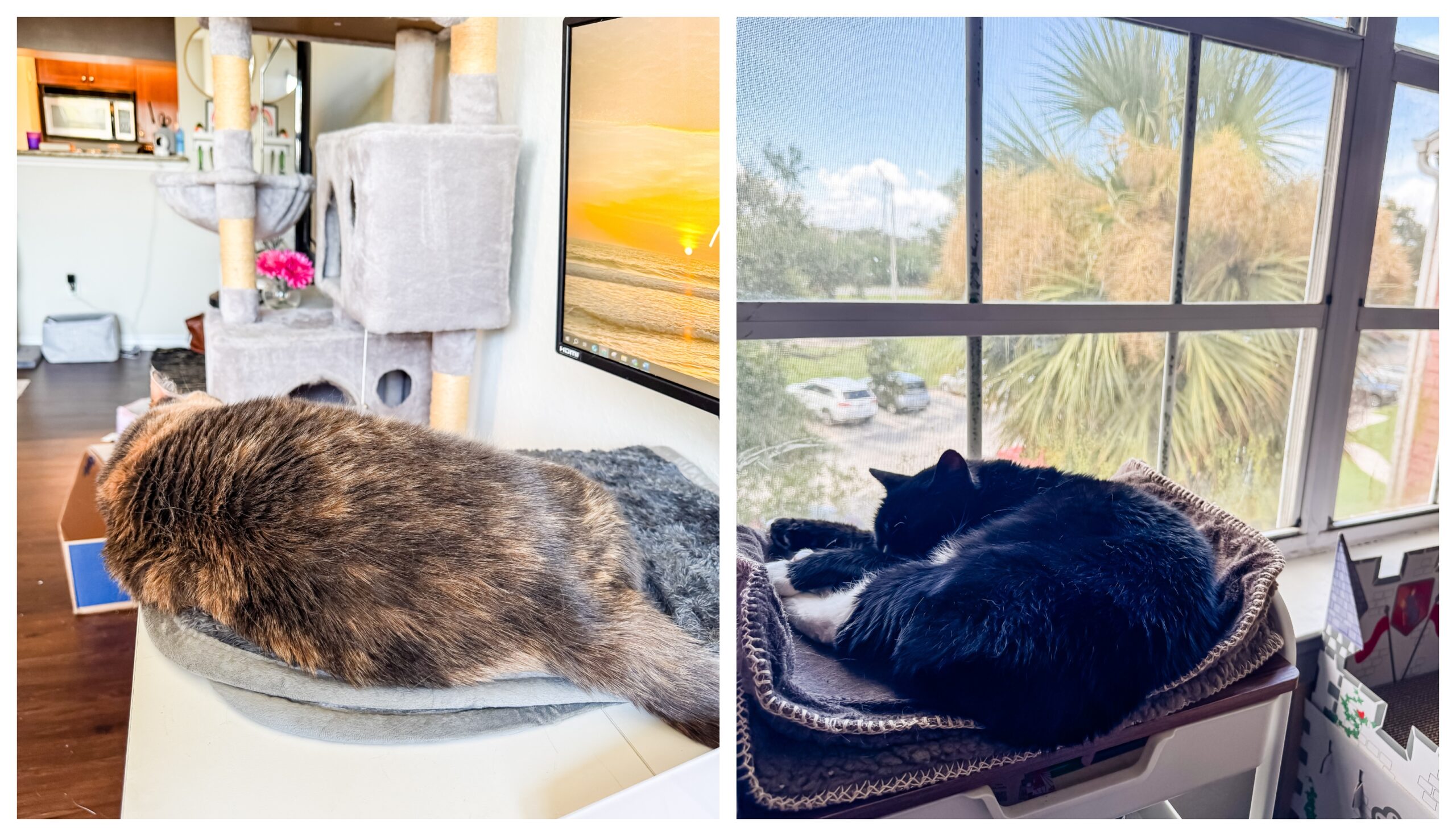 Lila LOVES sleeping on the sweat towel I use in my HIIT classes. Sometimes I’ll just throw it on the table when I get home and later find her curled up on it. I guess she loves my gross sweaty gym smell!