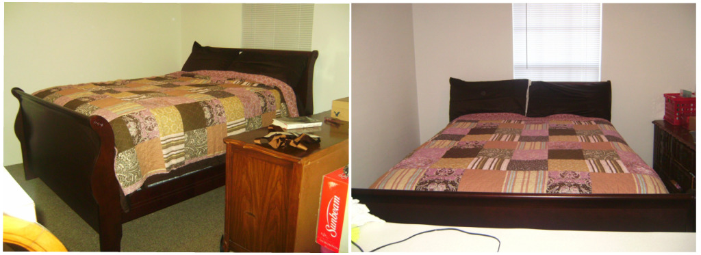Of course, my mom being who she is, had to think it over. (Sleep on it?) We came back the next day, assured of our purchase. My mom bought the sleigh bed and a queen-sized mattress and box spring (and the price was reduced by $100 since that mattress was being discontinued and they would have to give us their floor model). And to make this deal even sweeter, this furniture store was offering a free frame for purchasing a mattress. My mom still wanted her sleigh bed, so I was given the frame! (Yay, me!) Unfortunately, now I need a queen-size mattress since my full one doesn’t exactly fit. (And looks kinda weird.) The price? Under $1,200. (If you were paying attention, that means it’s half the price we would have paid for just the mattress at the mattress store!)